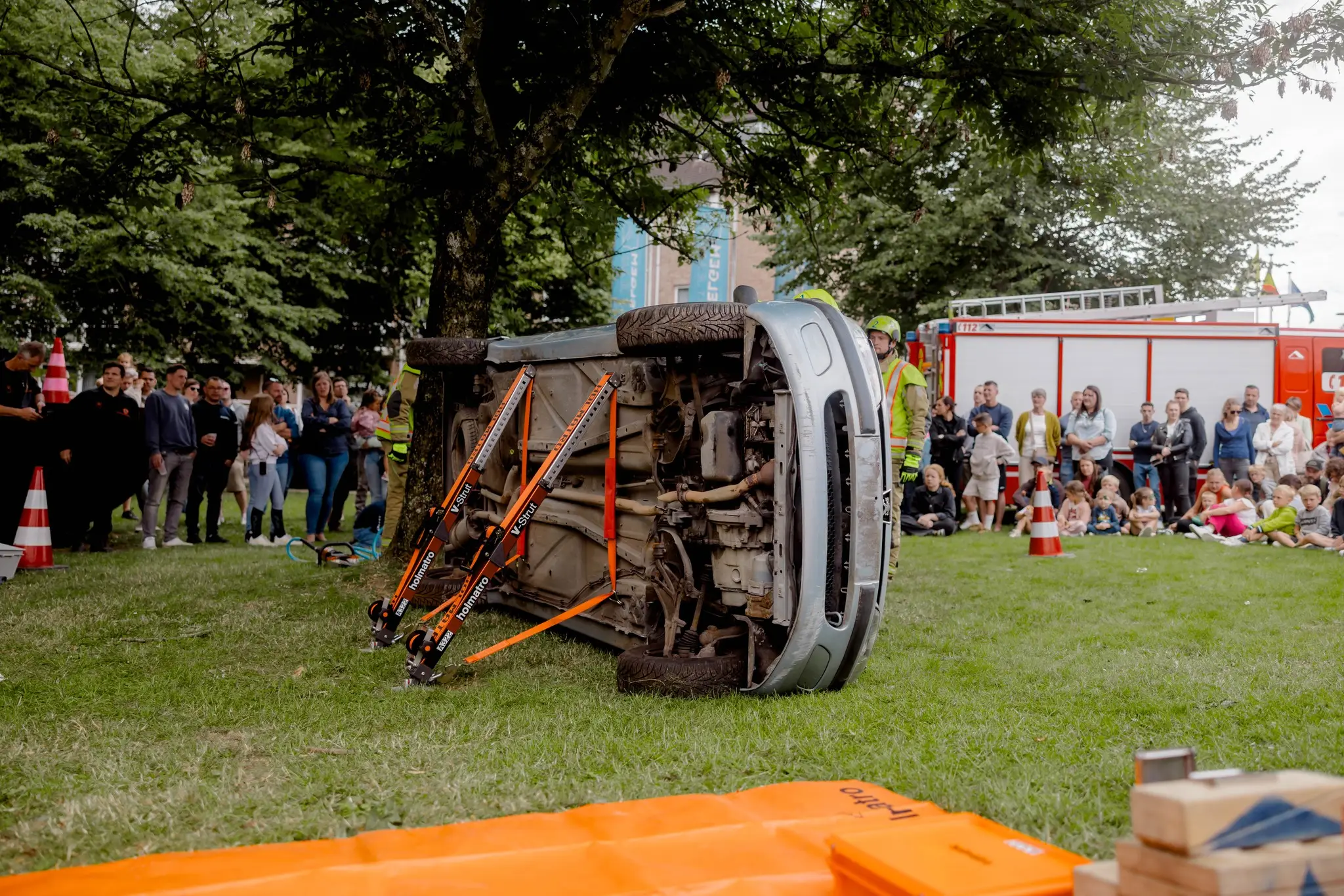 14:00 De toekomst van de brandweer! Onze jeugdbrandweer demonstreert hun vaardigheden en teamwerk bij het opbouwen van het aflegsysteem.